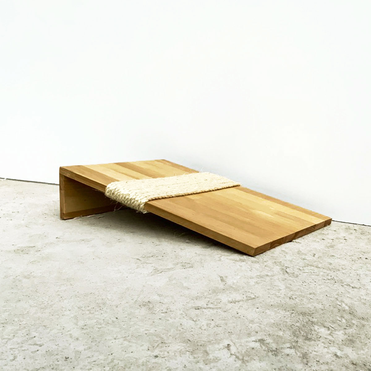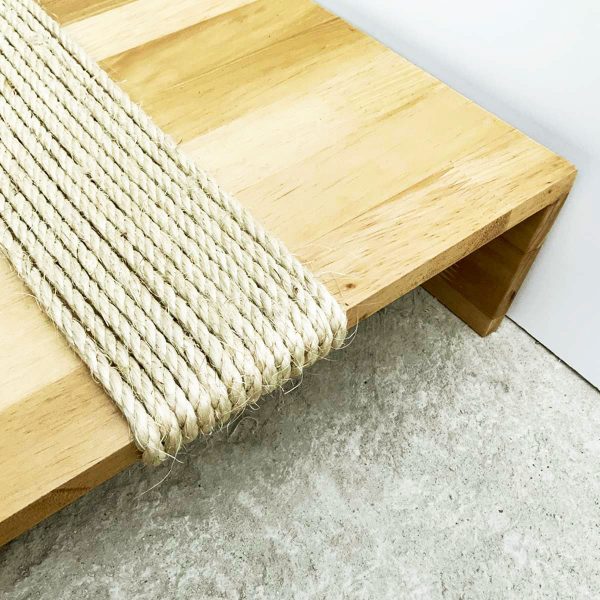 Juguete rascador para gatos ideal para que tu peludo se ejercite, elaborado en tablero alistonado y recubierto en fibra natural.