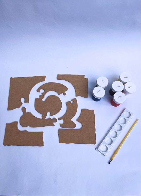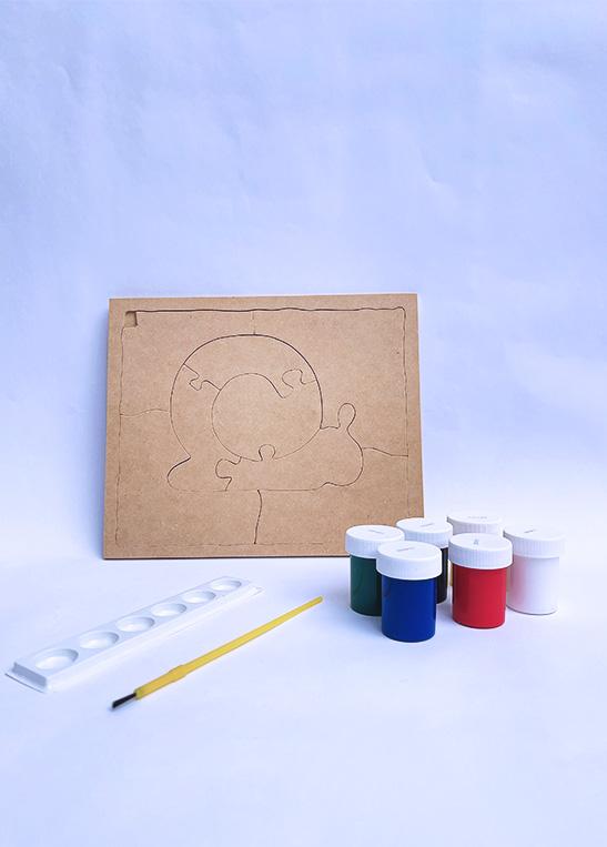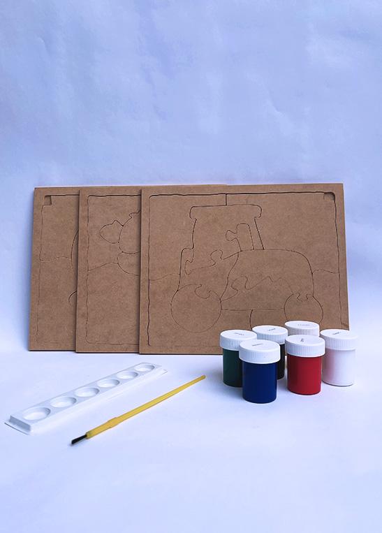 Juego didáctico elaborado a mano por jóvenes de la Corporación Correcaminos de El Retiro Antioquia en material mdf, set por 3 unidades con diferentes motivos para armar y colorear